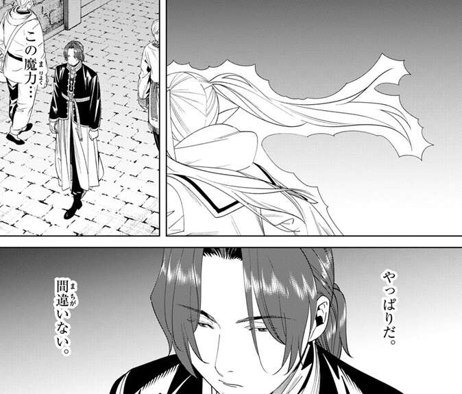 街中で騒ぎを起こしたくないのは向こうも同じだろう、とフリーレンは考え、さらに女神様の魔法は戦闘の補助程度でなく、戦術の根幹に組み込まれていると、フリーレンはフェルンに言います。その時、廃屋にガゼレが乱入してきて、フリーレンに斬りかかります。