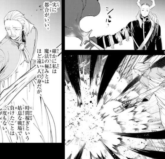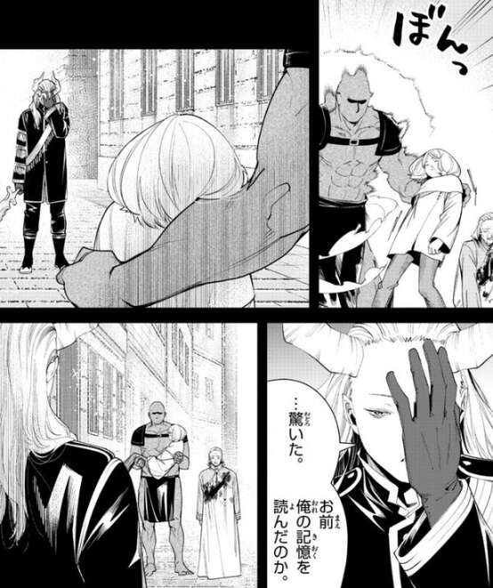 マハトはレルネンを逃がさず殺そうとしますが、マハトがレルネンを攻撃している隙にエーデルはマハトに触って記憶を読み取ります。エーデルはマハトの記憶を読み取ったようですが、かなり無理をしたようで鼻血を流して意識を失います。レルネンはゴーレムをさらに召喚すると、記憶を読み取って倒れそうになったエーデルを抱きかかえます。