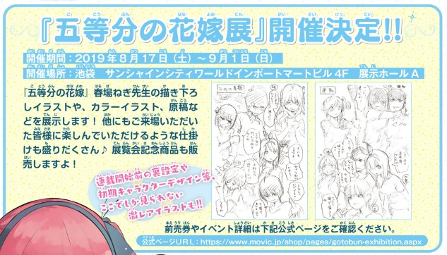 既に終了していますが、東京での五等分の花嫁展の開催決定の告知です。