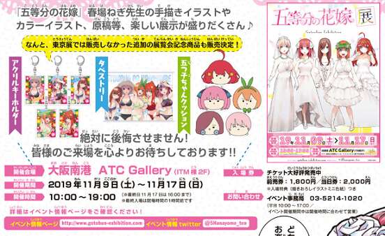 大阪で五等分の花嫁展、開催終了しました。以下の画像は、大阪での五等分の花嫁展の告知です。