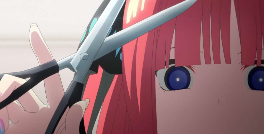 期末試験も終わり、二乃の髪型もショートカットになり、そして風太郎は家庭教師を続行となりました。原作だと期末試験当日に、風太郎が中野父親に電話で、少しは父親らしいことしろよ、馬鹿野郎が、と怒鳴りますがそのシーンはカットされてしまっていました。というか中野父親は、出番がカットされています。