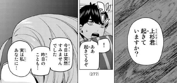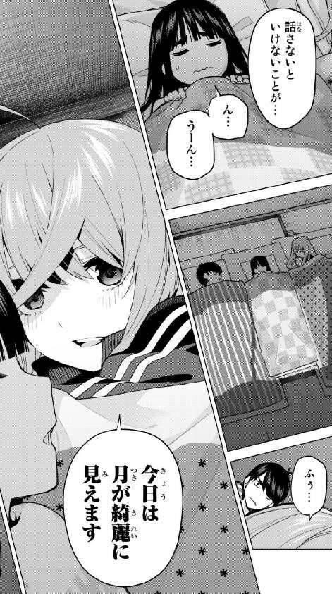 風太郎が悩んでいると、五月から起きているかと話しかけてきます。