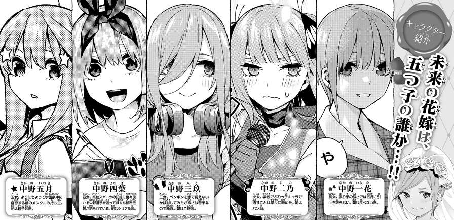 【ネタバレ 感想】五等分の花嫁 1巻の感想