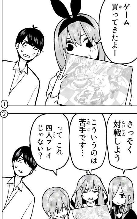 しかし二乃は四葉の買ってきたゲームを勘違いしているようです。二乃はどうしたでしょう?