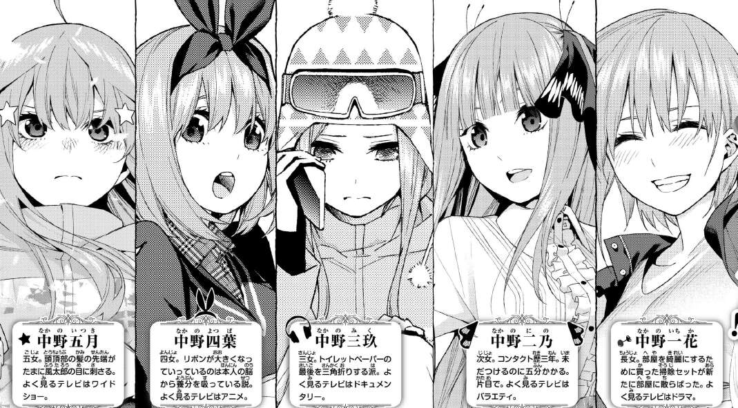 三玖:三女。よく見るテレビはドキュメンタリー。