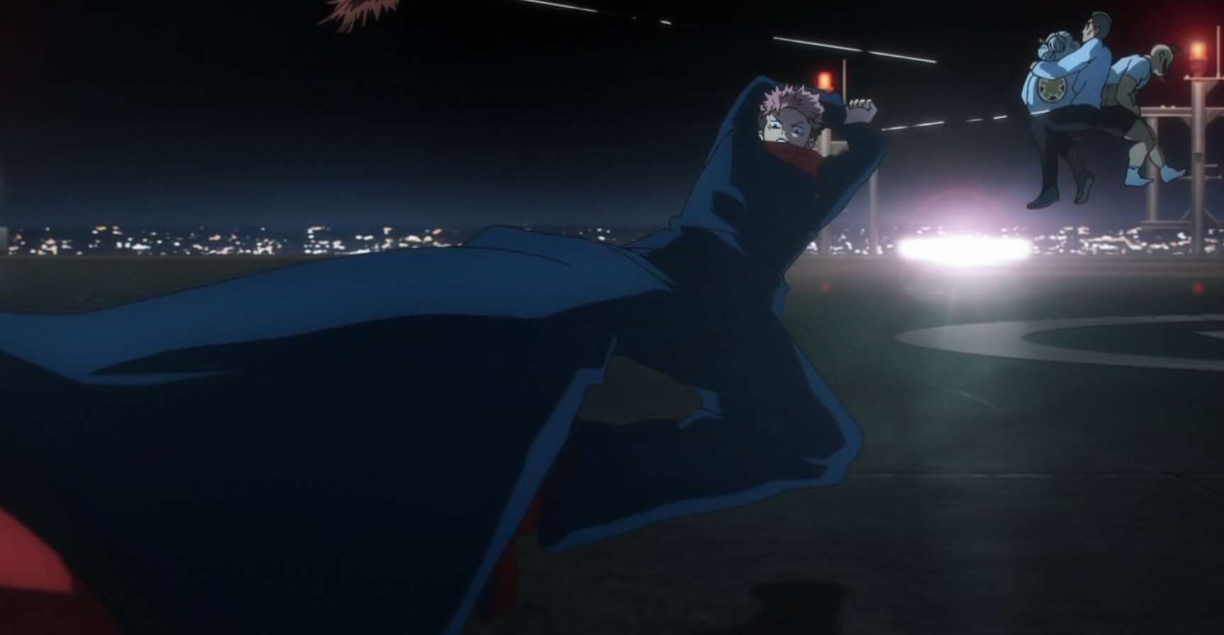 “術師を入れない帳”が虎杖の打撃でも破れない強固な“帳”であった事から、三人は結界の基をあえて結界外の目立つ場所に置いている事に気付きます。そうすることで“帳”の強度を上げていて、三人はこの辺りで一番目立つタワーへと向かいます。予想通り、渋谷 セルリアンタワーに呪詛師達はいて、伏黒の「鵺」を使って屋上へ直接攻め込み猪野は“帳”の基を一気に破壊しようとします。