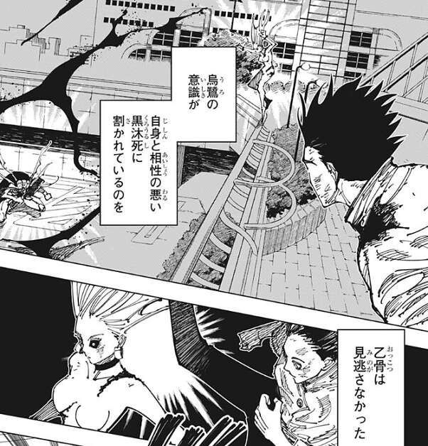 ここで烏鷺の意識が相性の悪い黒沐死に割かれますが、その隙を乙骨は見逃さす烏鷺を背後から攻撃します。