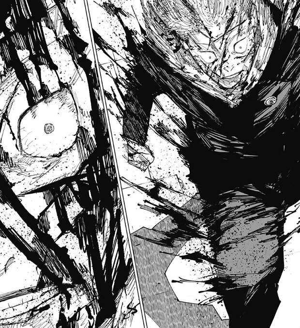 虎杖は宿儺に向かって歩き出しますが、宿儺は虎杖に何度も斬撃を浴びせます。虎杖は何度も斬撃を浴びて出血しますが、宿儺の方へ歩くのをやめません。