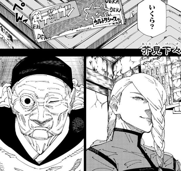 冒頭で冥冥が誰かと会っています。この人物が何者かは分かりませんが、時期はおそらく新宿決戦前のようです。街角の駄菓子屋で店主をしているこの人物は何者でしょうか?