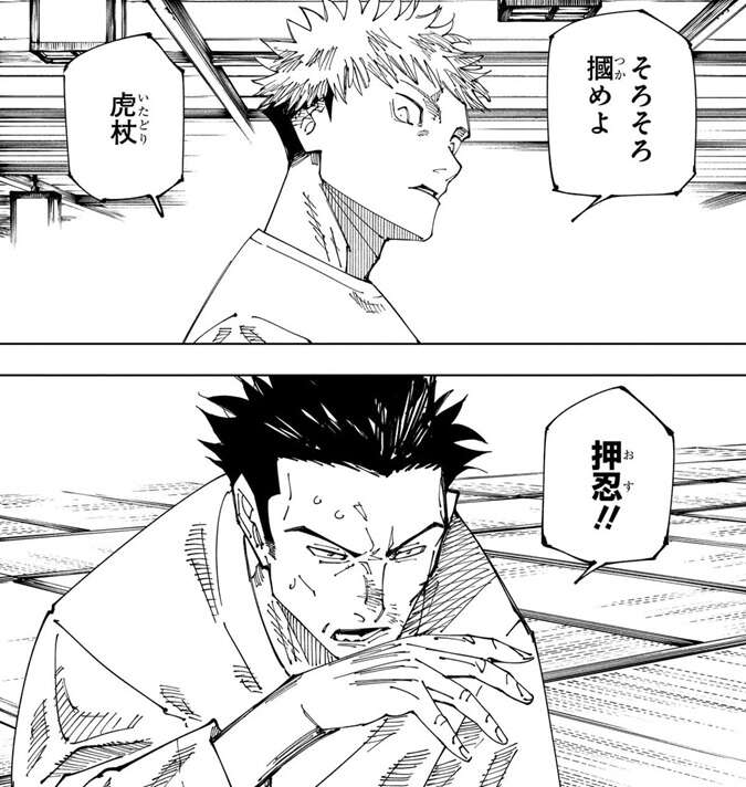 第222話で何かの特訓をしていた虎杖と日下部ですが、肉体が虎杖と日下部で入れ替わっているように見えました。コミックのおまけでも、虎杖の中にいる日下部?が、若いな~肉体が軽い、と喜んでいるので、やはり肉体が入れ替わっているようです。何かの特訓の為に肉体を入れ替えたのでしょうが、どういう原理で入れ替わったのかは不明です。