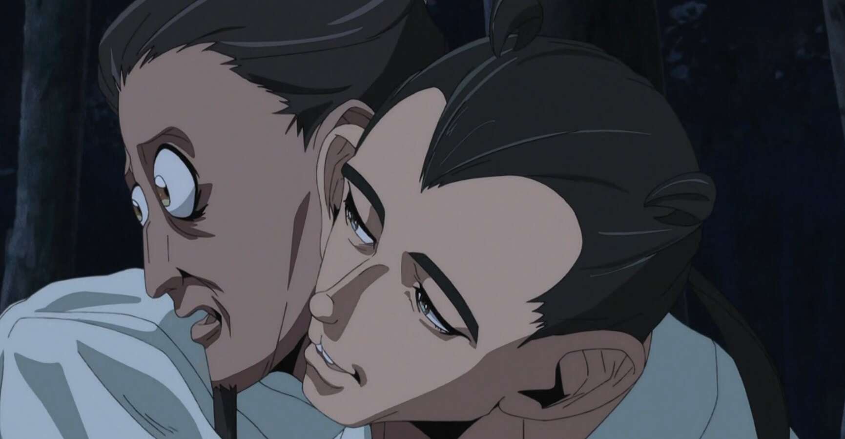 時行は玄蕃が一人で逃げたのに気付き、隠れ鬼ではこの距離で動き出すのが一番見つかりやすいと危険を察知し、とっさの判断で身を挺して玄蕃を庇います。玄蕃は助かりますが、時行は背中に刀傷を負ってしまいます。玄蕃は何故見捨てようとした自分を助けたのか時行に聞きますが、時行は、さっきに君を疑ってしまった、君が死んだら詫びれない、と言った後、絶対に自分から君を裏切らないと答えます。