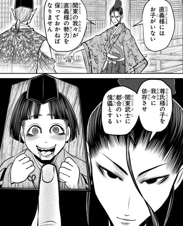 利根川の戦に大勝利した時行は、顕家に顕家軍の将達を紹介してもらいます。執事の春日顕国と指揮官の伊達行朝は常識人で、時行を歓迎します。しかし結城宗広は一見常識人に見えますが、実は保科党にいたシリアルキラーの結城三十郎の父親で、この結城宗弘も三十郎と同様、重度のシリアルキラーでした。さらに南部師行もあからさまに時行を馬鹿にする、癖の強い人物です。弧次郎は南部の失礼な態度に腹を立てますが、時行は尊氏を倒す為と顕家軍の将と一から信頼を築いていこうと心に誓います。