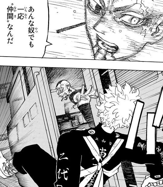 マイキーにタイマンで挑むパーちんですが、パーちんのパンチはマイキーに何度もかわされ、マイキーに一方的にやられて行きます。一方、乾青宗に加勢した九井一は、今牛若狭と荒師慶三に関東卍會をやめると宣言し、乾青宗の側につくと言います。