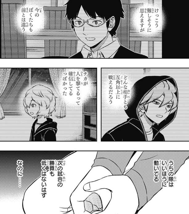 ヒュースがチームに加入して、次の試合は楽勝っぽい雰囲気でしたが、雨取千佳が実は人を撃つことが出来るのでは?と判明してから、とたんに次の試合の雲行きが怪しくなってきました。